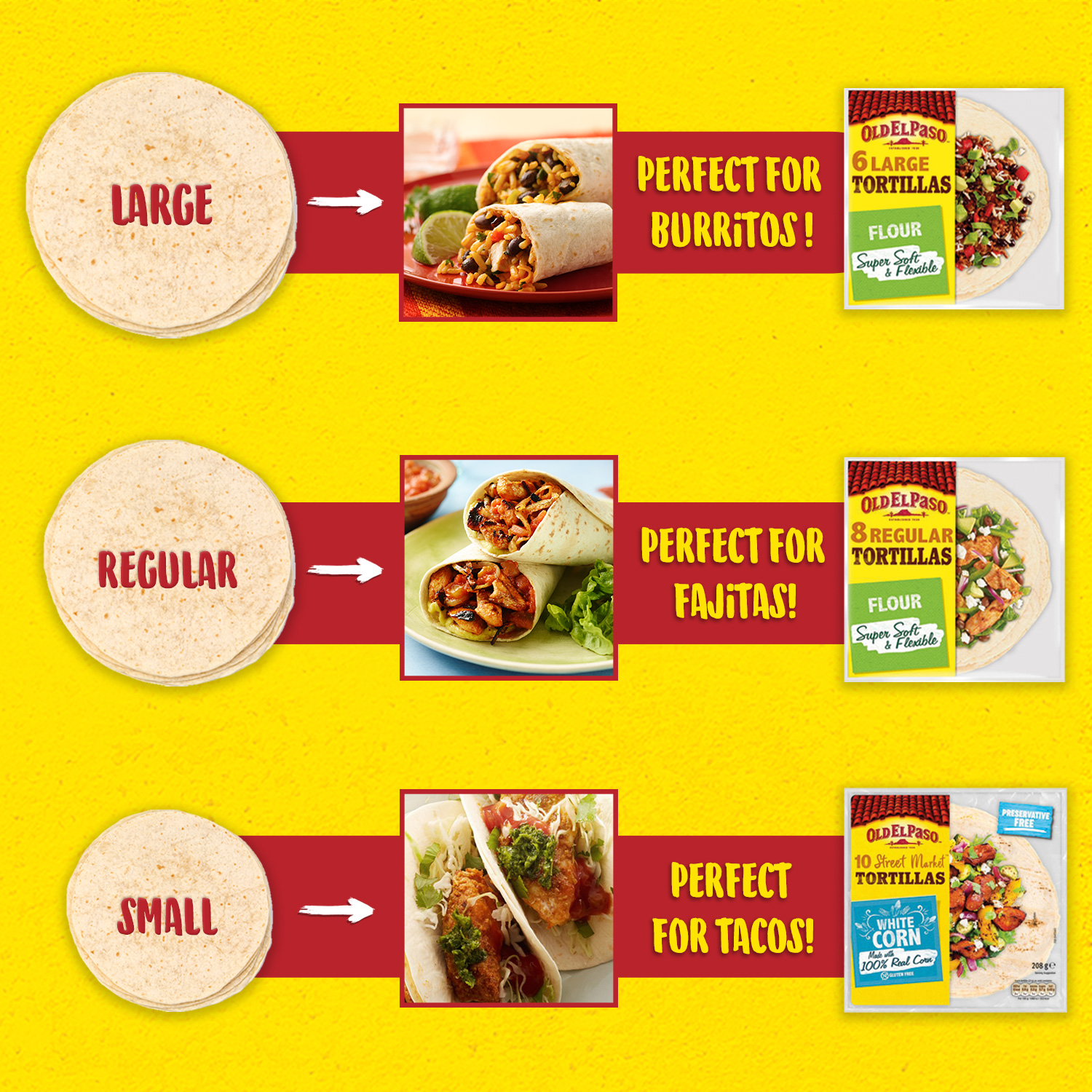 OLD EL PASO ULTIMATE TORTILLA SIZE GUIDE